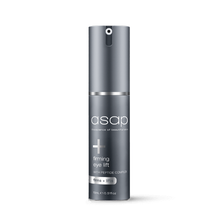 ASAP Firming Eye Lift is an ultra-hydrating eye cream enriched with a Multi-Peptide Complex that helps lift and firm the delicate eye area by stimulating elastin and collagen production. Featuring an innovative Australian-first ingredient, it combats stress-induced collagen loss and boosts skin density.